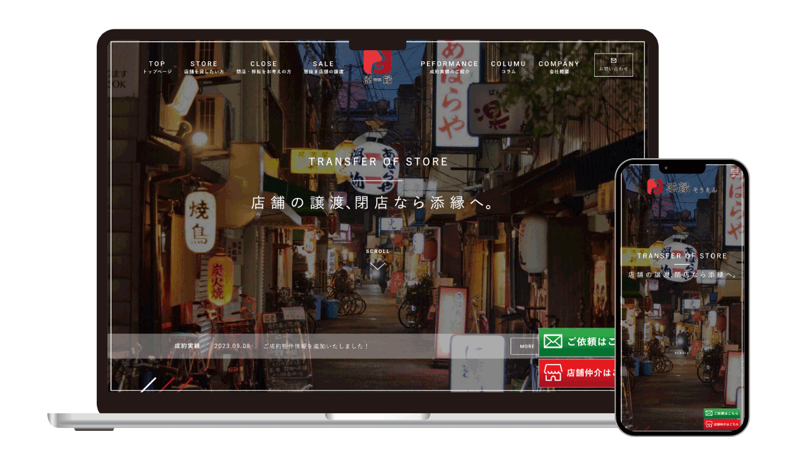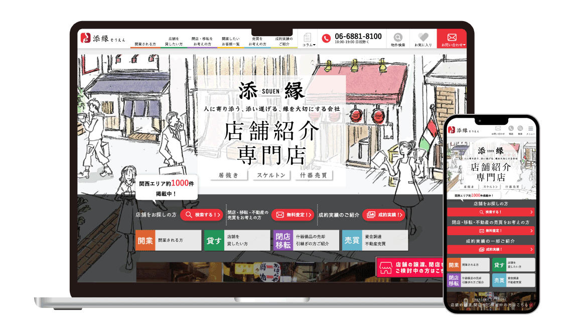 私たちは、人との出会い、仕事との出会いはすべて「縁」だと考えています。偶然の出会いから、人と人との絆を紡ぎ、寄リ添い、多くの縁を結んでいきたい。新居を購入したい方、長年所有している住居の売却や相続について相談したい方、開業して店舗を持ちたい方、今の店舗を閉店して新たな挑戦を始めたい方、店舗を貸してオーナー業に参入したい方、不動産を売却して資金を調達したい方…。様々なお客様に寄リ添い、ご要望をお聞きします。